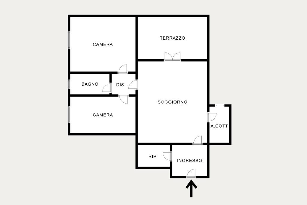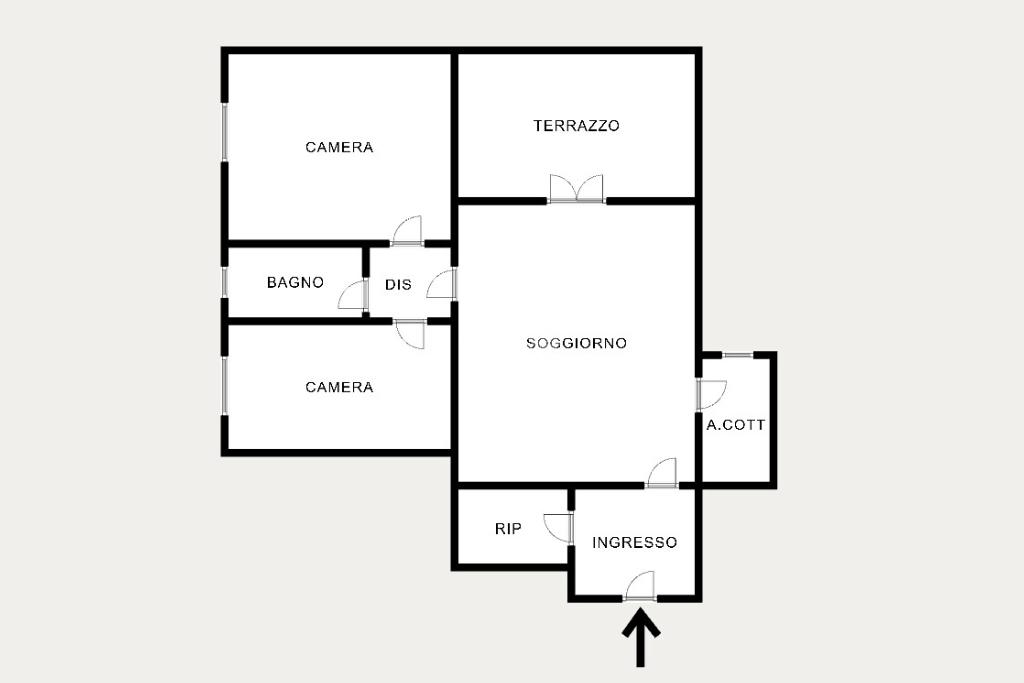 L'immobile situato al secondo piano di una palazzina fornita di ascensore, si compone di comodo ingresso con ripostiglio, ampio soggiorno luminoso, cucinotto finestrato, camera da letto matrimoniale, cameretta e servizio igienico con doccia.