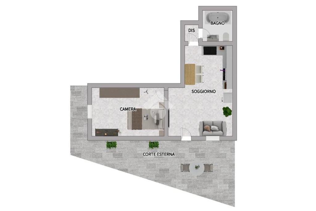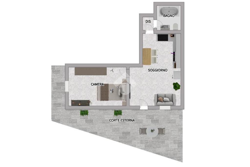 Proponiamo in vendita al piano terra di una palazzina residenziale un appartamento ristrutturato con corte esterna privata.
